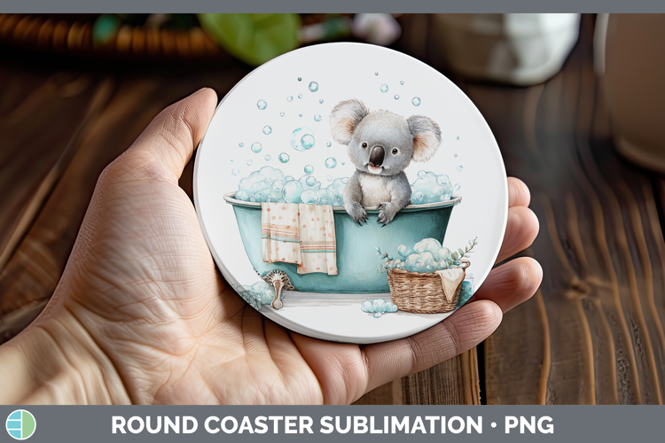 Koala Safari Bathtub Round Coaster Sublimation Design