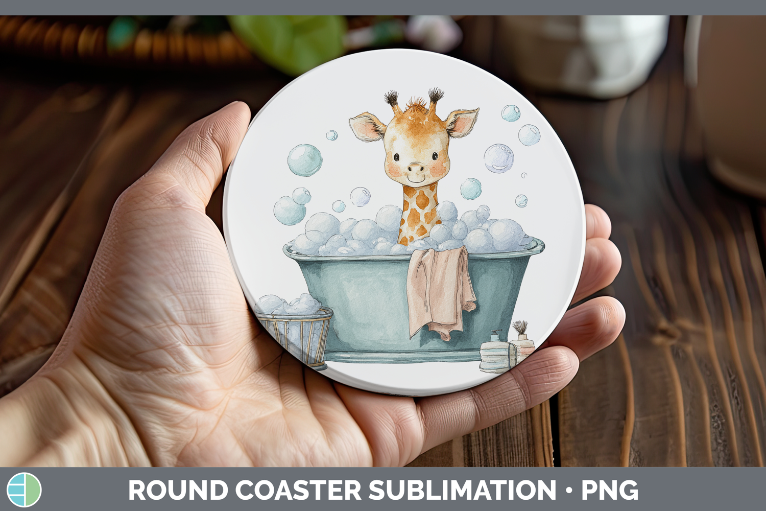 Giraffe Safari Bathtub Round Coaster Sublimation Design