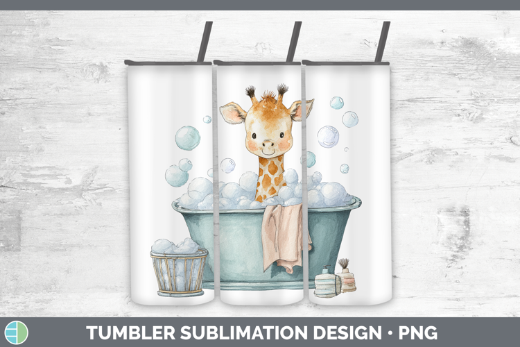 Giraffe Safari Bathtub Tumbler Sublimation Design