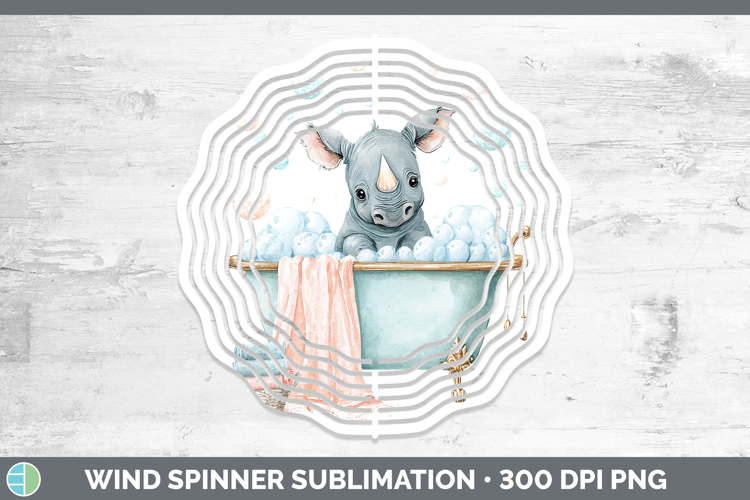 Rhino Safari Bathtub Wind Spinner Sublimation Design
