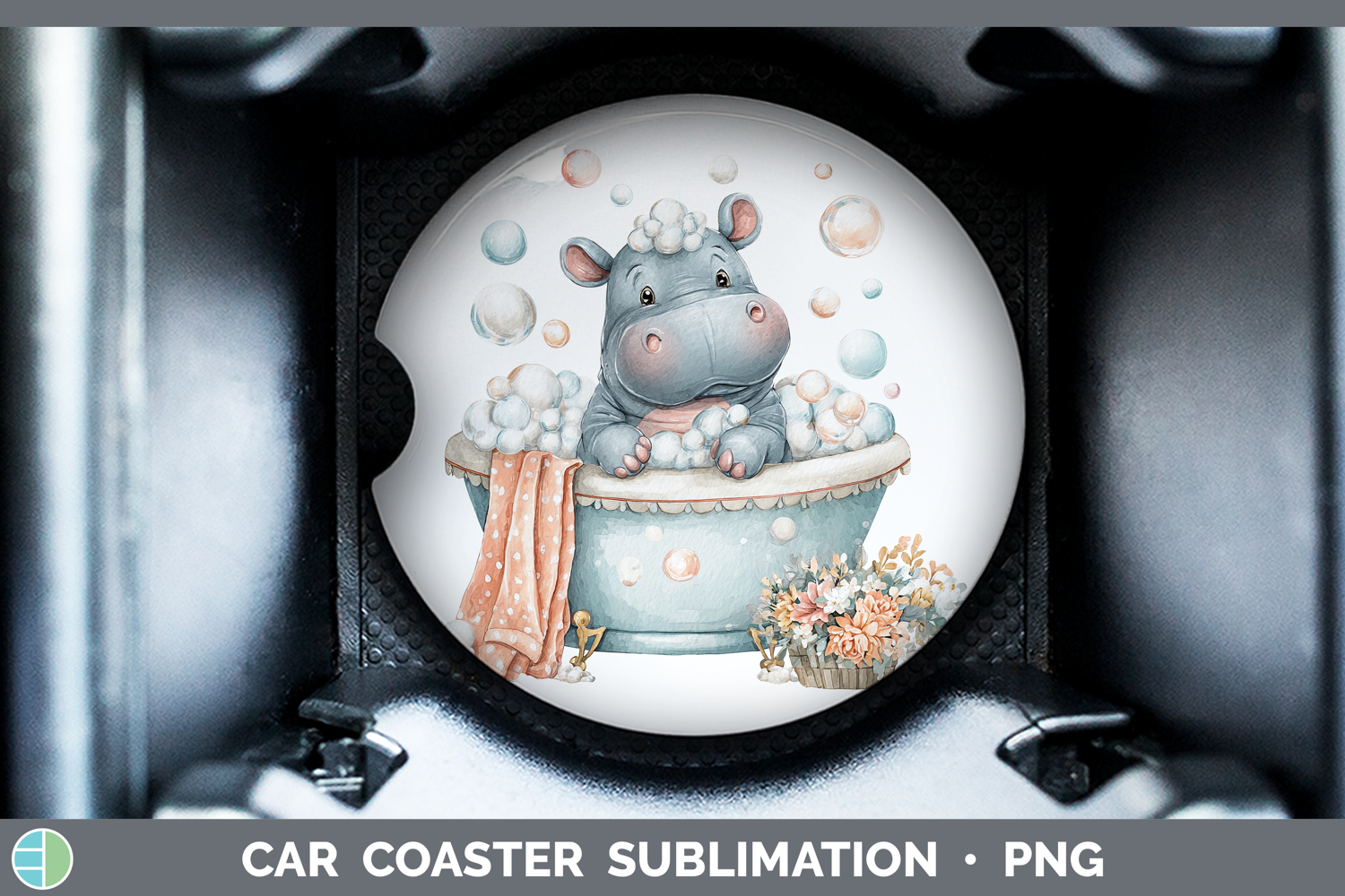 Hippo Safari Bathtub Car Coaster Sublimation Design