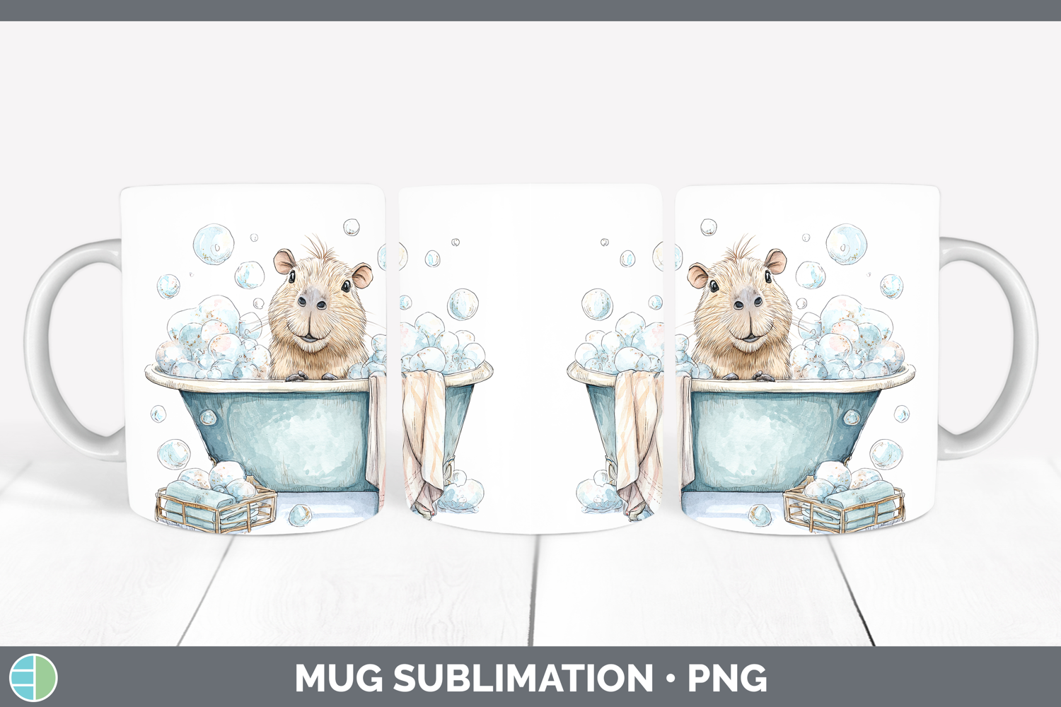 Capybara Safari Bathtub Mug Wrap Sublimation Design