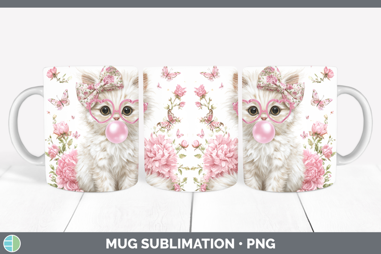 Angora Cats Pink Bubble Gum Mug Wrap Sublimation Design