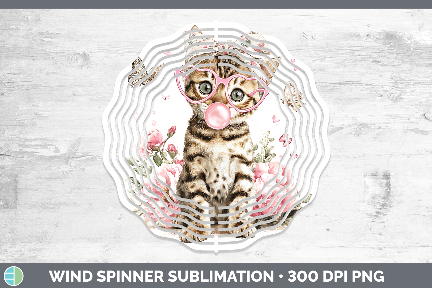 Bengal Cats Pink Bubble Gum Wind Spinner Sublimation Design