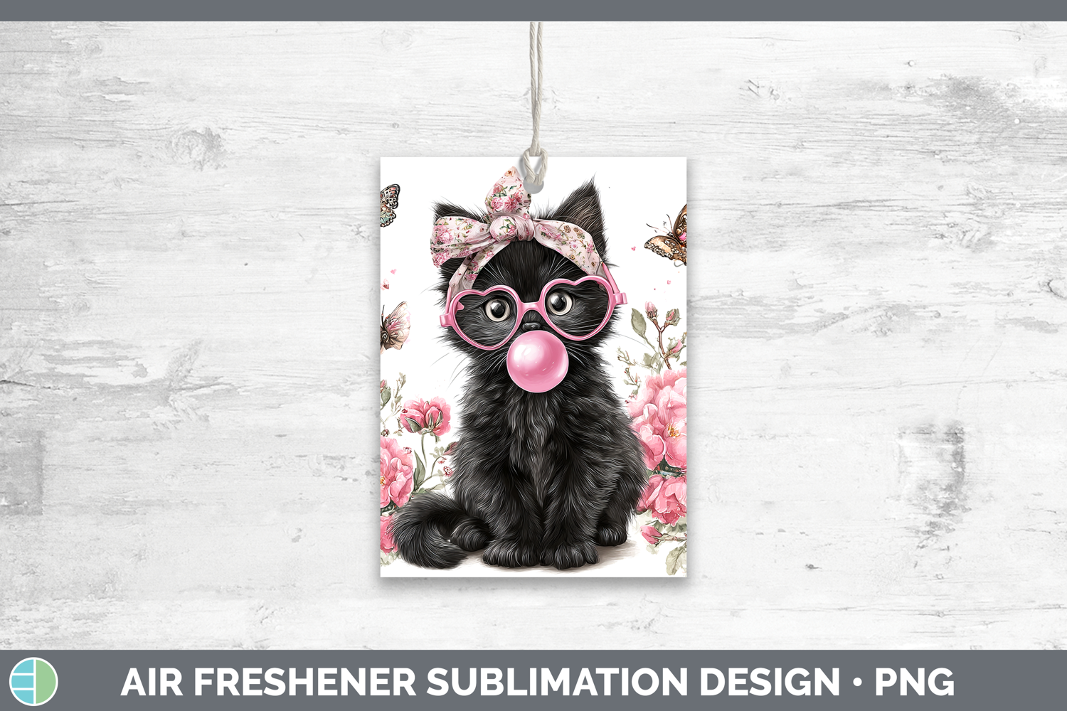 Black Cats Pink Bubble Gum Air Freshener Sublimation Design