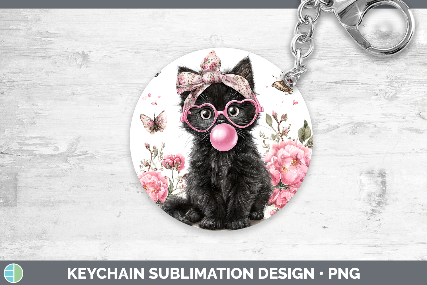 Similar Design Products to Black Cats Pink Bubble Gum Keychain Sublimation Design