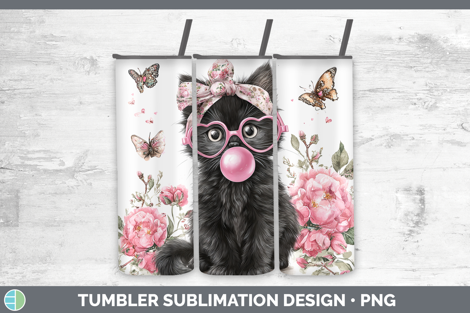 Similar Design Products to Black Cats Pink Bubble Gum Tumbler Sublimation Design