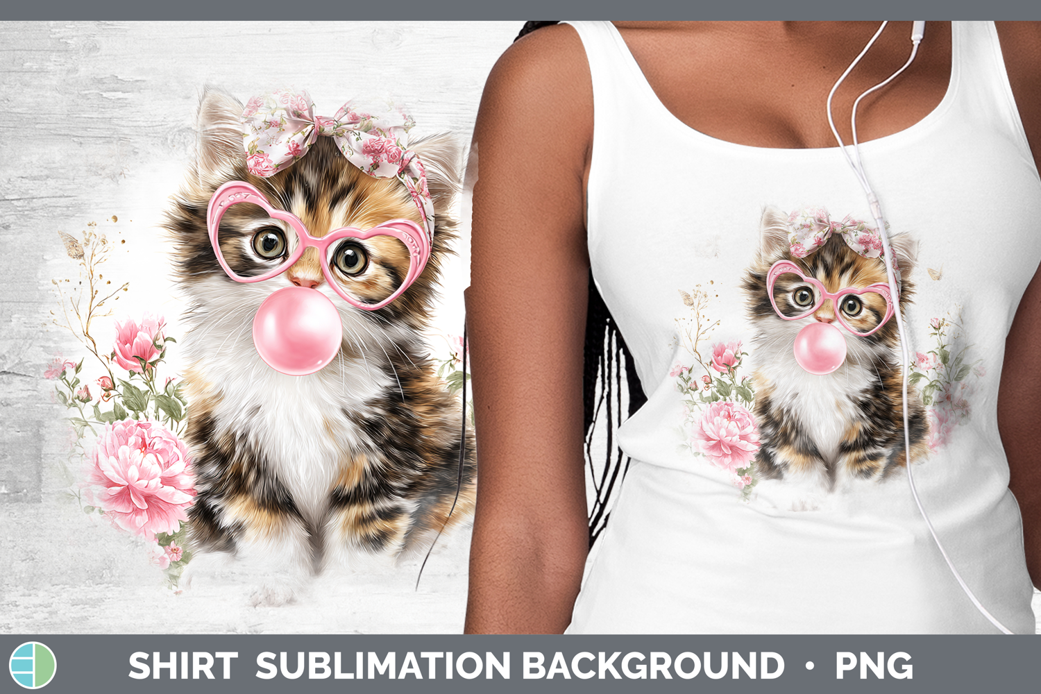 Calico Cats Pink Bubble Gum Shirt Sublimation Design