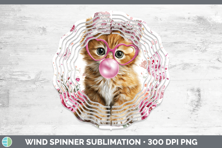 Orange Cats Pink Bubble Gum Wind Spinner Sublimation Design