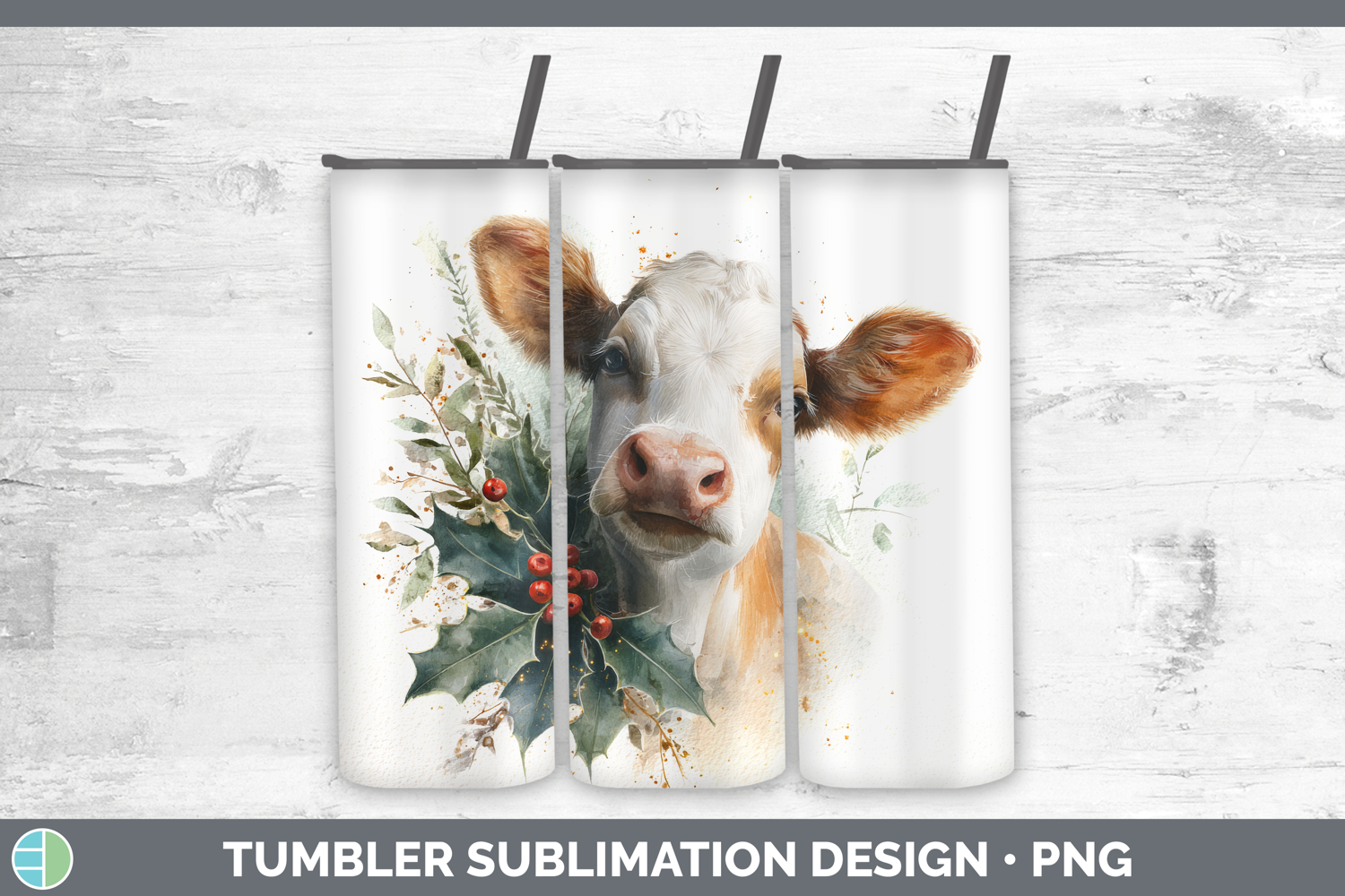 Similar Design Products to Cow Farm Christmas Botanicals Tumbler Sublimation Design