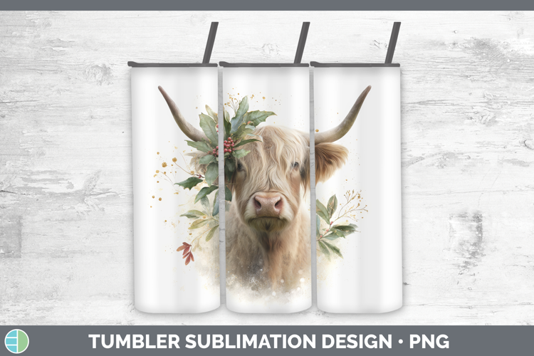 Highland Cow Farm Christmas Botanicals Tumbler Sublimation D