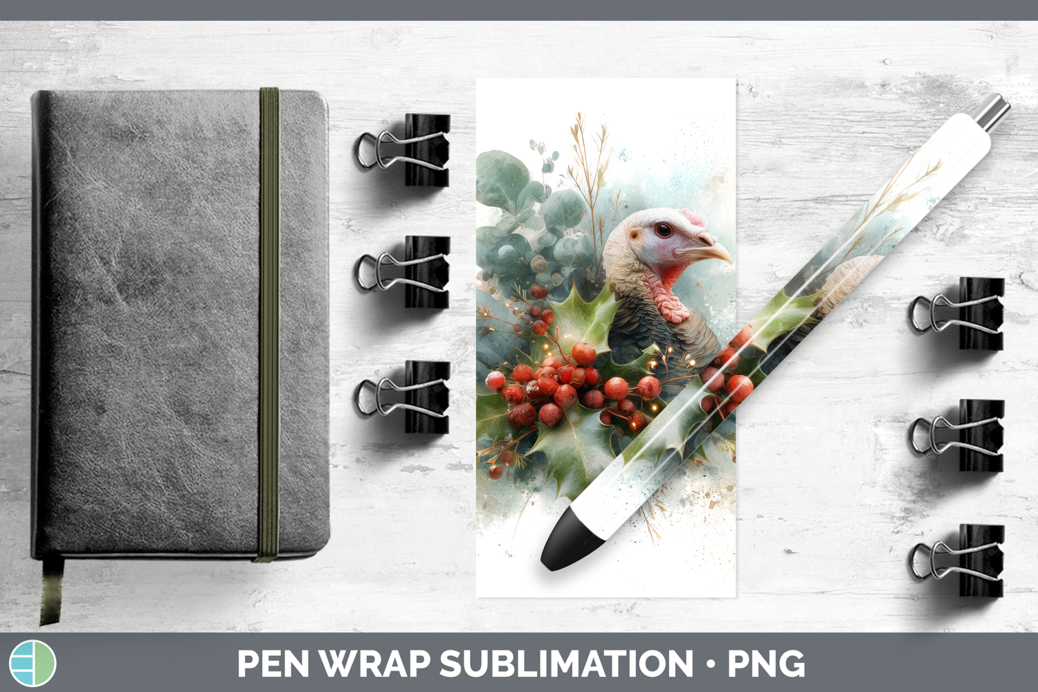Turkey Farm Christmas Botanicals Pen Wrap Sublimation Design