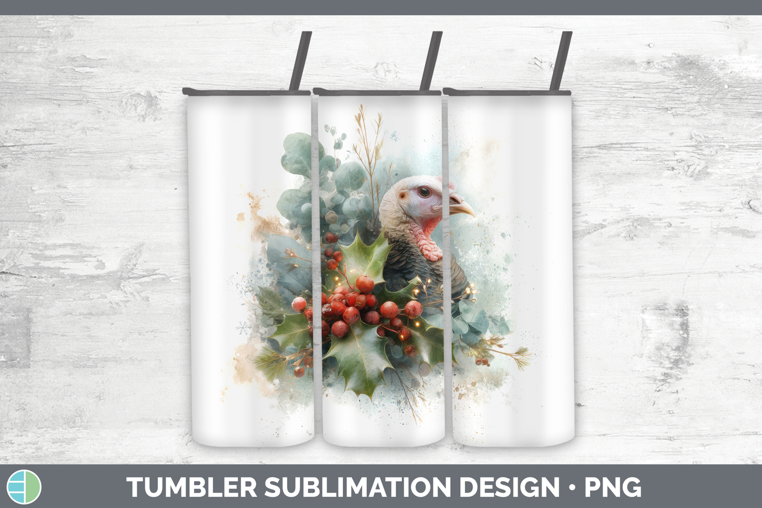 Turkey Farm Christmas Botanicals Tumbler Sublimation Design