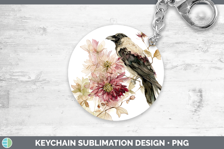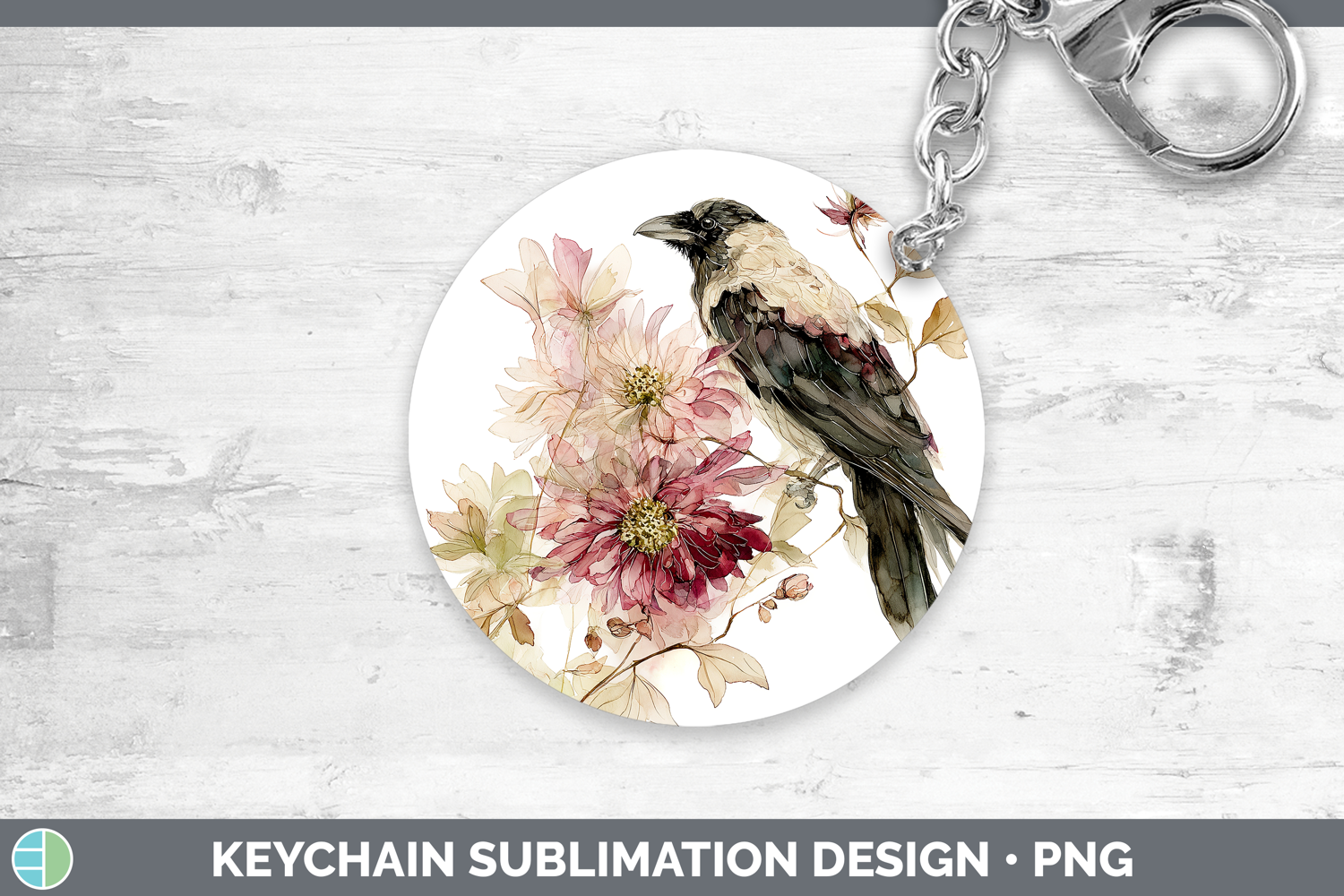 Crow Birds 01 Autumn Floral Keychain Sublimation Design