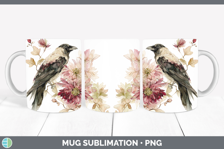 Crow Birds 01 Autumn Floral Mug Wrap Sublimation Design