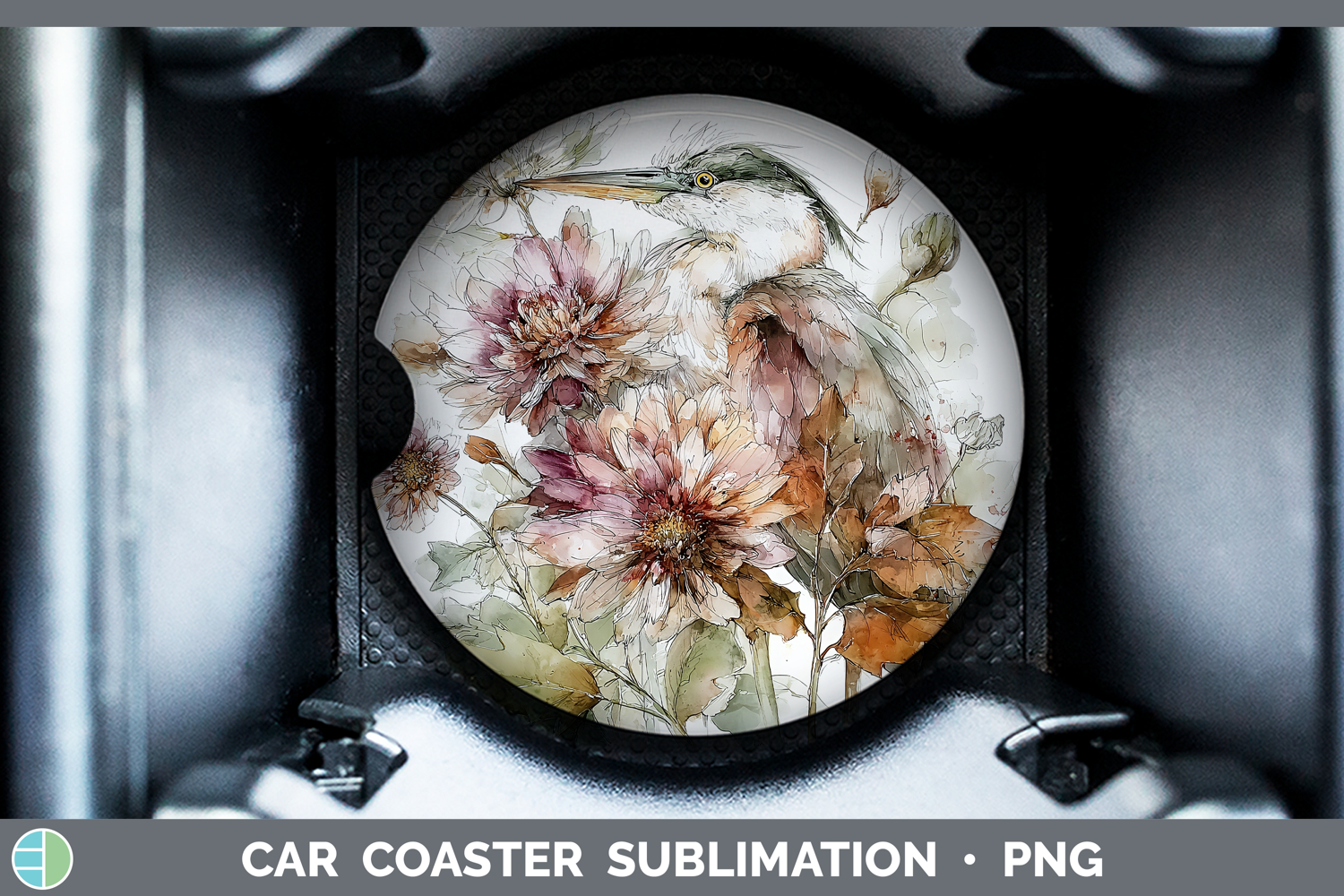 Great Blue Heron Birds 01 Autumn Floral Car Coaster Sublimat