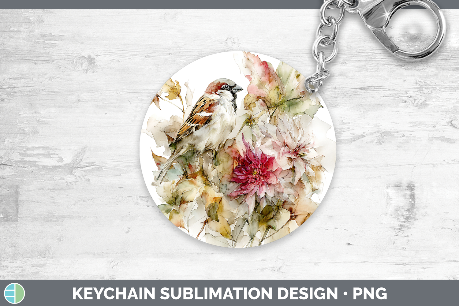 Similar Design Products to Sparrow Birds 01 Autumn Floral Keychain Sublimation Design