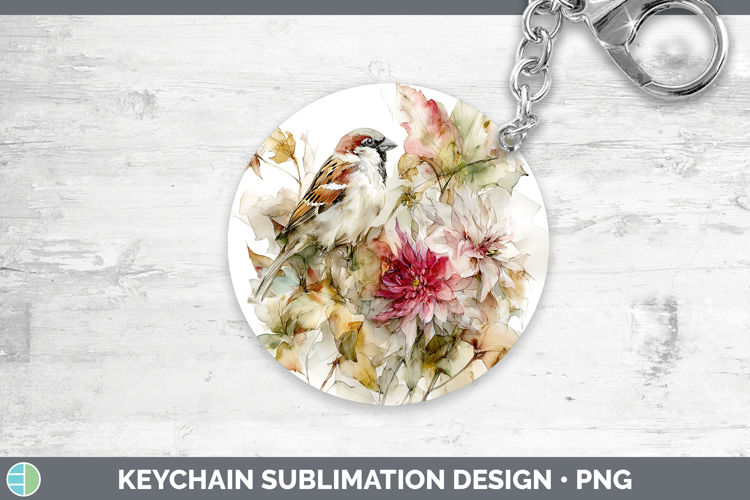 Sparrow Birds 01 Autumn Floral Keychain Sublimation Design