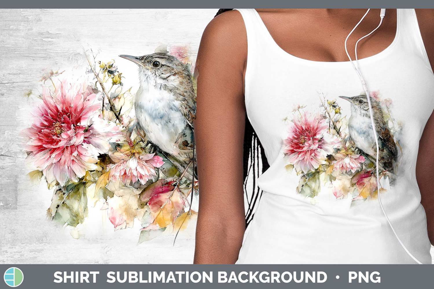 Wren Birds 01 Autumn Floral Shirt Sublimation Design