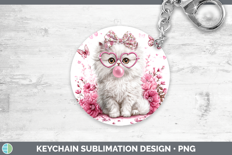 Persian Cats Pink Bubble Gum Keychain Sublimation Design