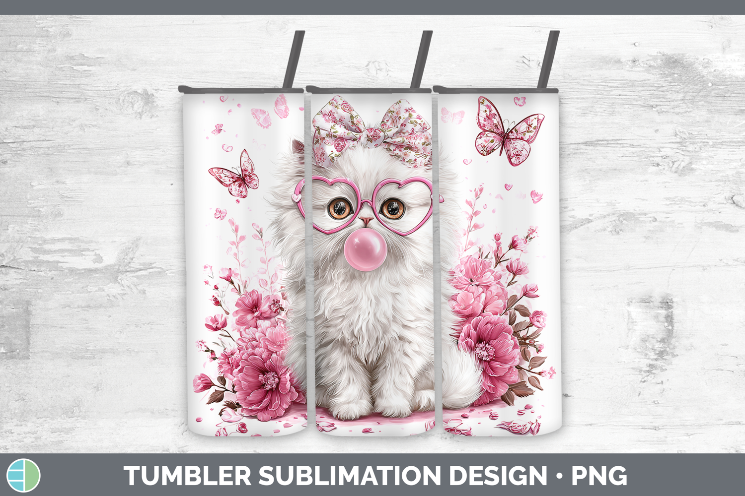 Persian Cats Pink Bubble Gum Tumbler Sublimation Design