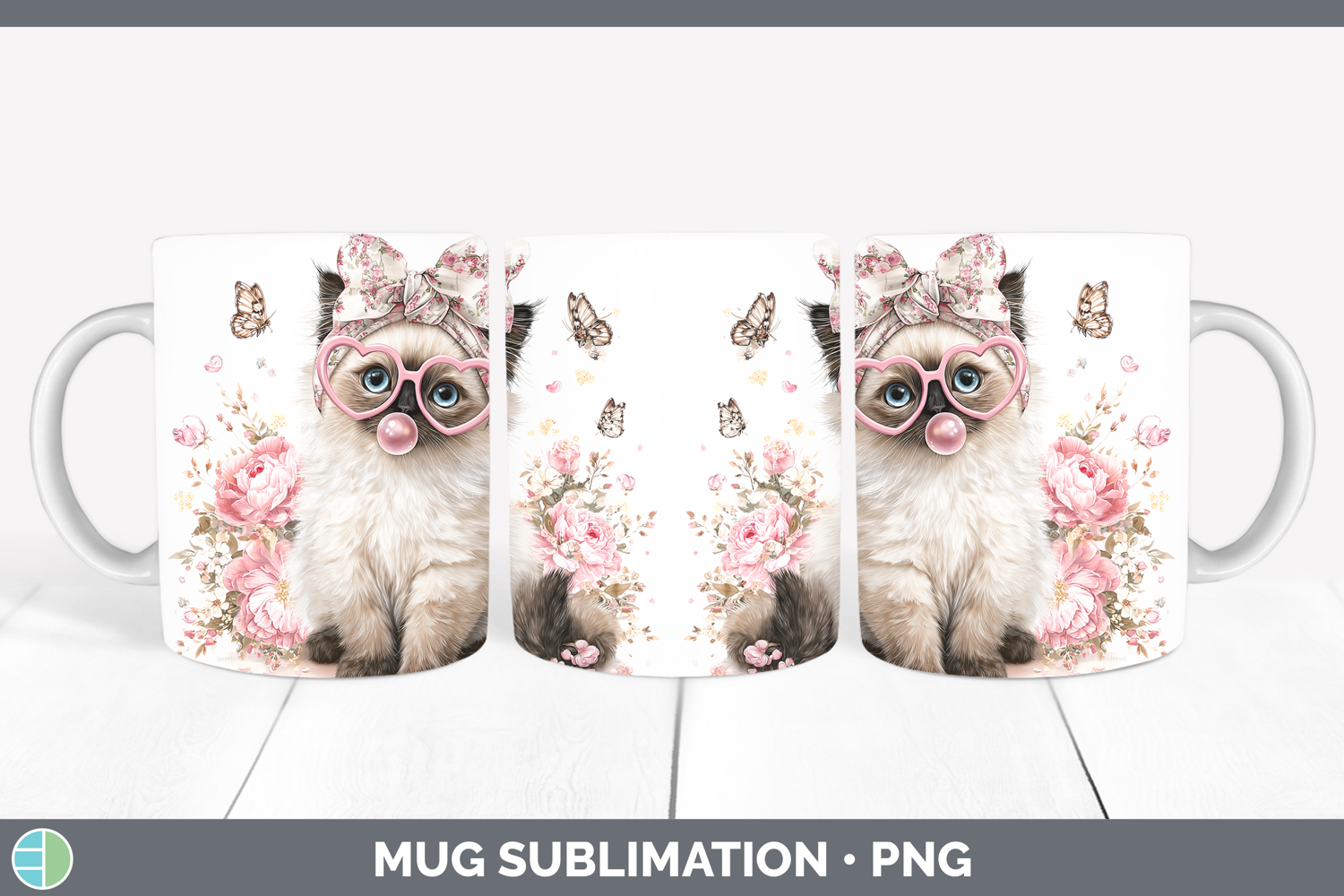 Birman Cats Pink Bubble Gum Mug Wrap Sublimation Design