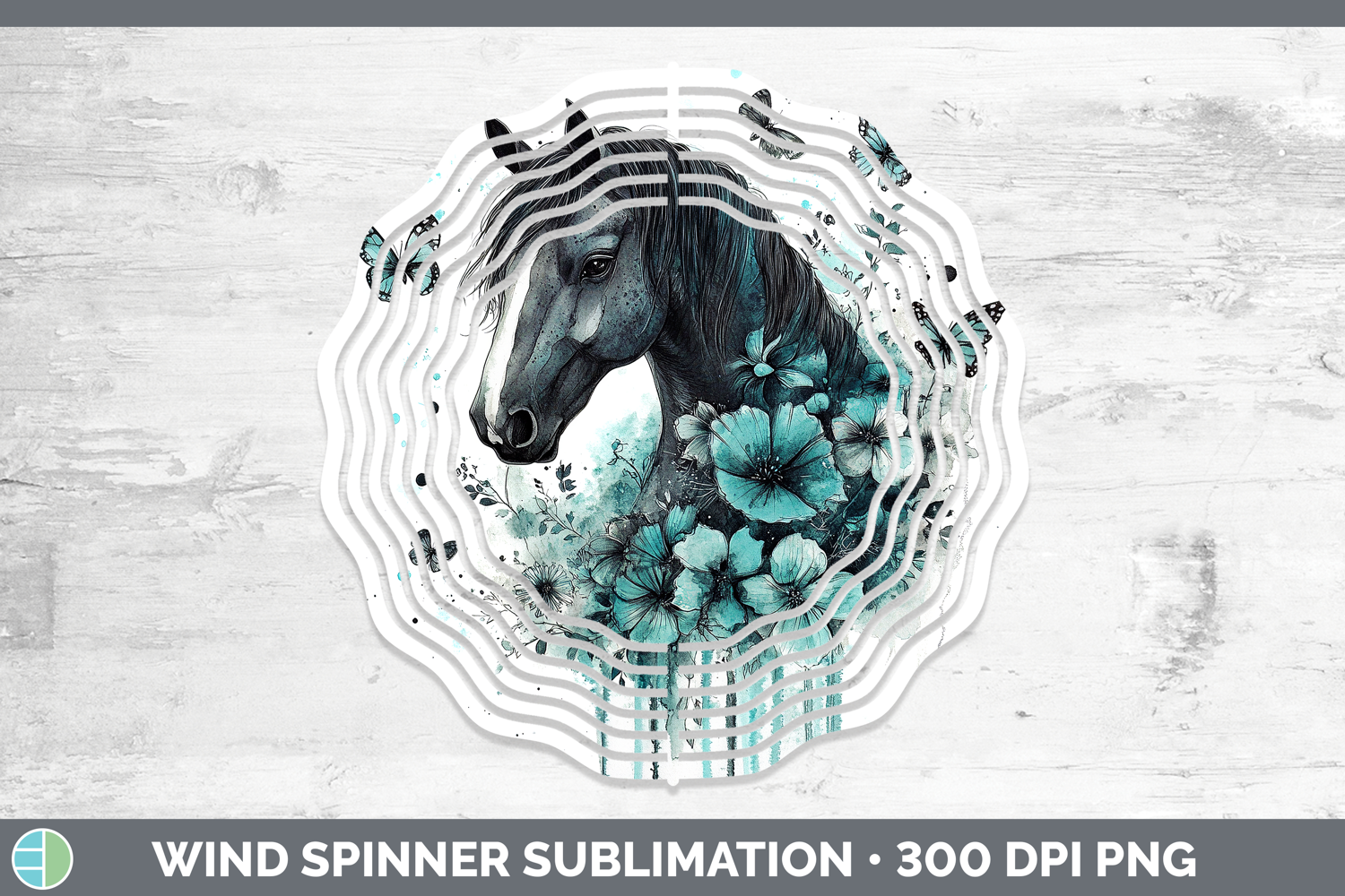 Horse Farm Teal Drips Wind Spinner Sublimation Design