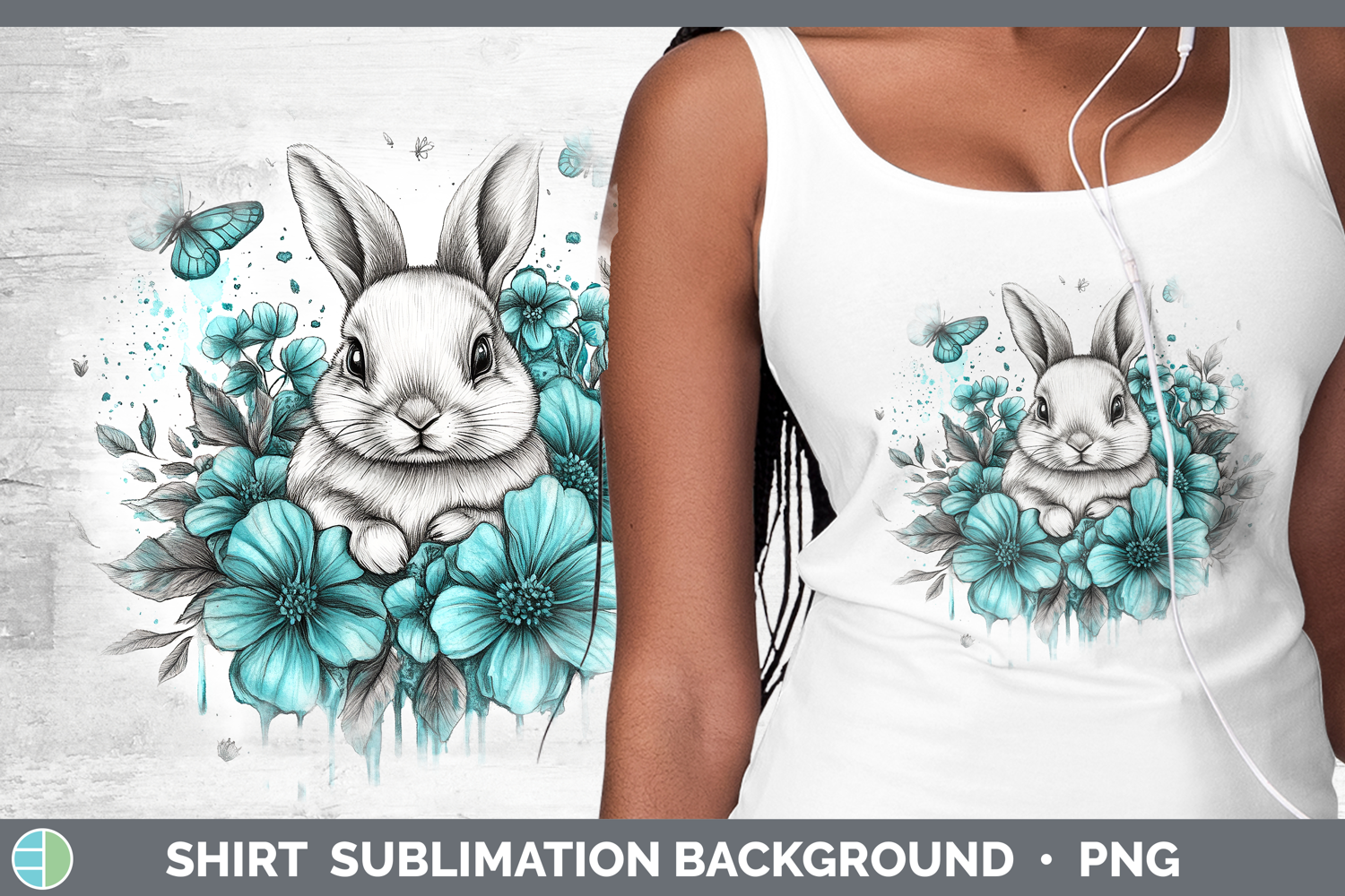 Bunny Farm Teal Drips Shirt Sublimation Design