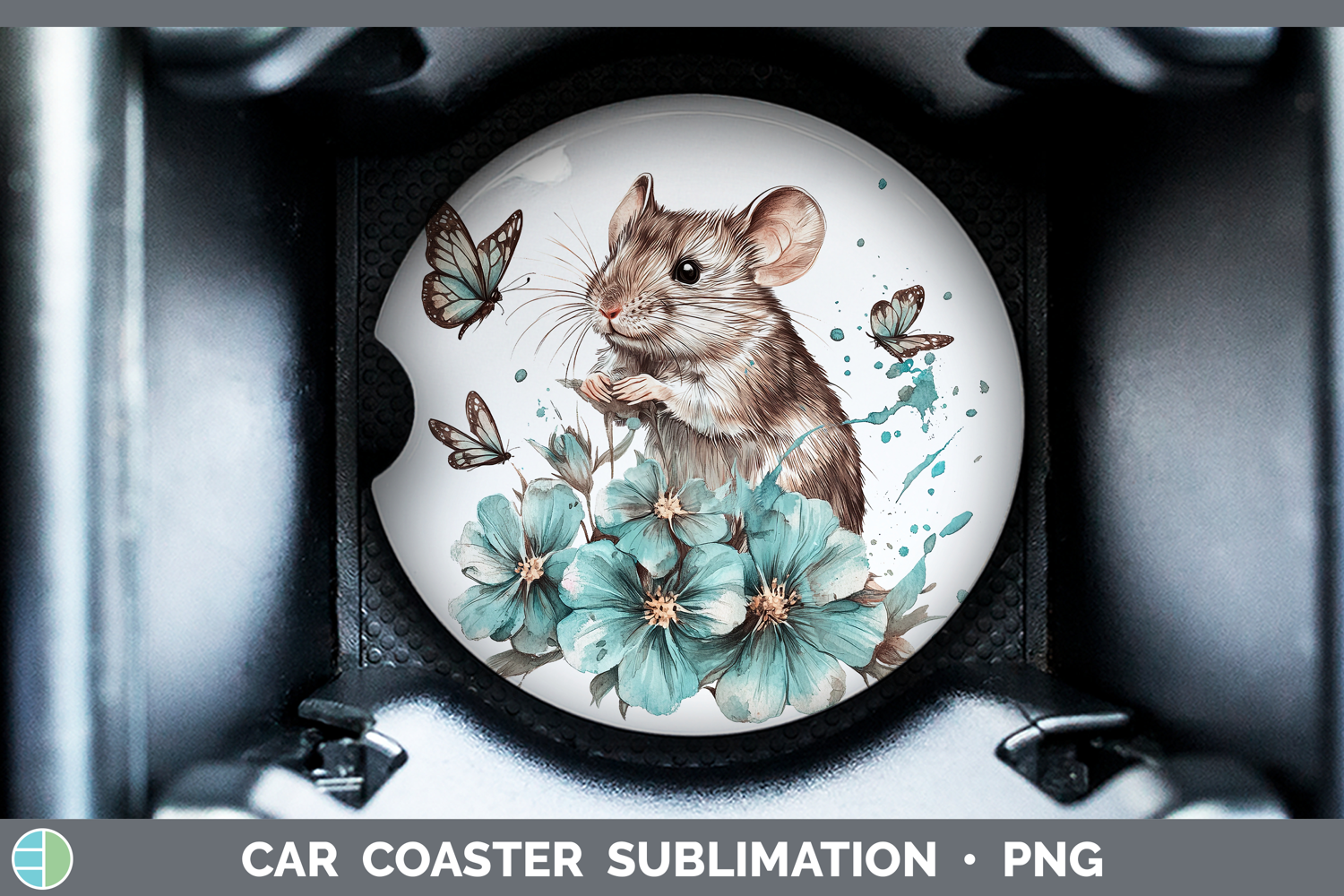 Mouse Farm Teal Drips Car Coaster Sublimation Design