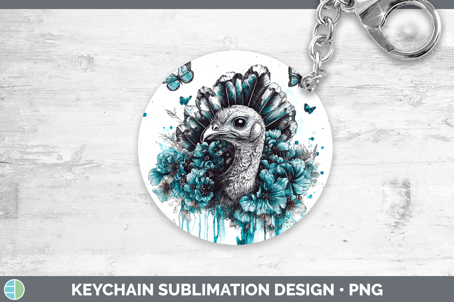 Turkey Farm Teal Drips Keychain Sublimation Design