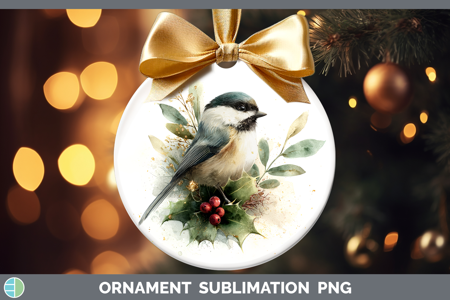 Similar Design Products to Chickadee Birds 01 Christmas Botanicals Ornament Sublimation