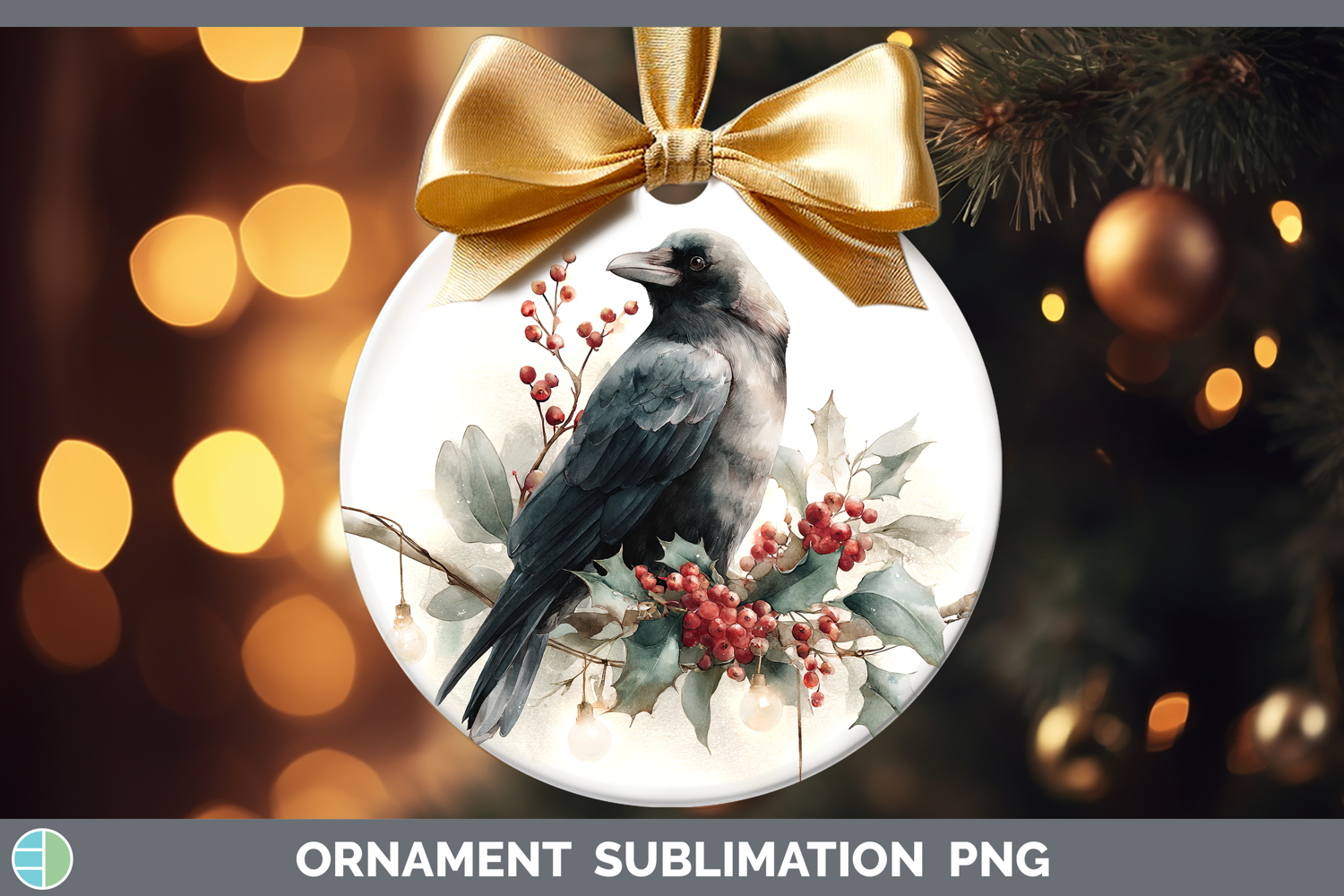 Crow Birds 01 Christmas Botanicals Ornament Sublimation Desi