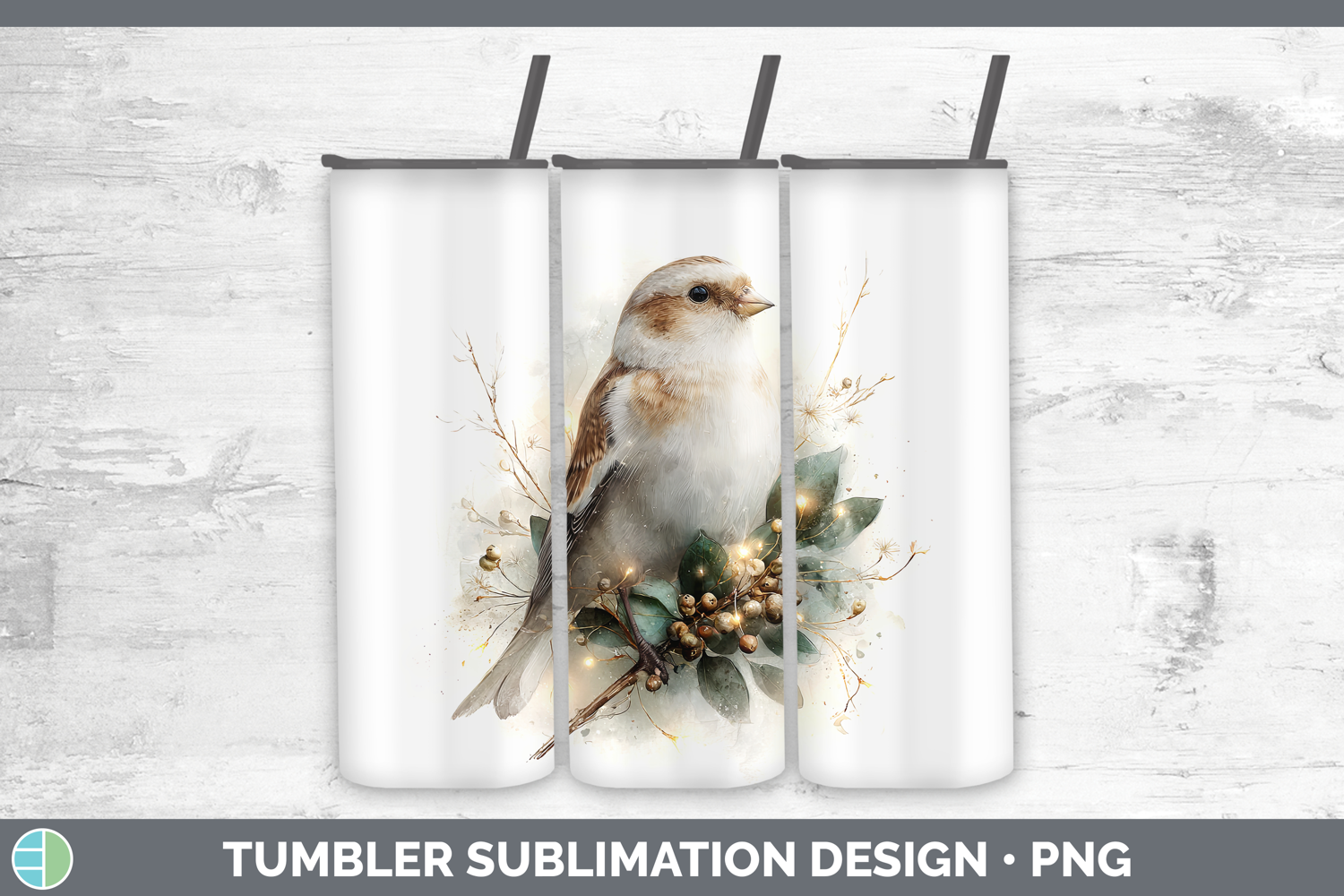 Similar Design Products to Snow Bunting Birds 01 Christmas Botanicals Tumbler Sublimati