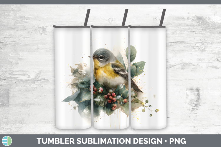Warbler Birds 01 Christmas Botanicals Tumbler Sublimation De