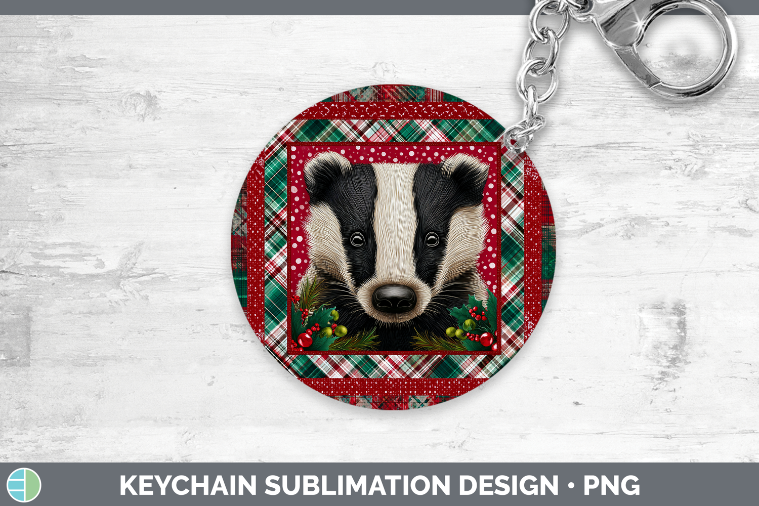 Badger Woodland Christmas Quilt Keychain Sublimation Design