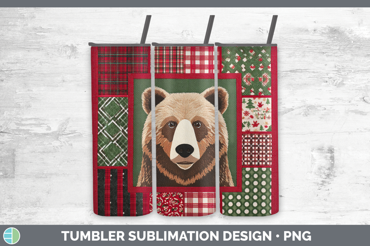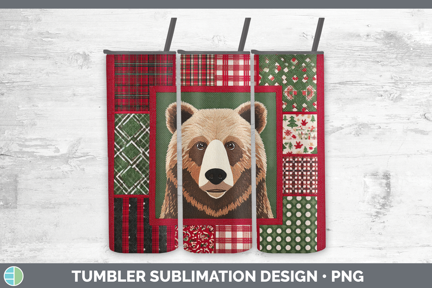 Grizzly Bear Woodland Christmas Quilt Tumbler Sublimation De