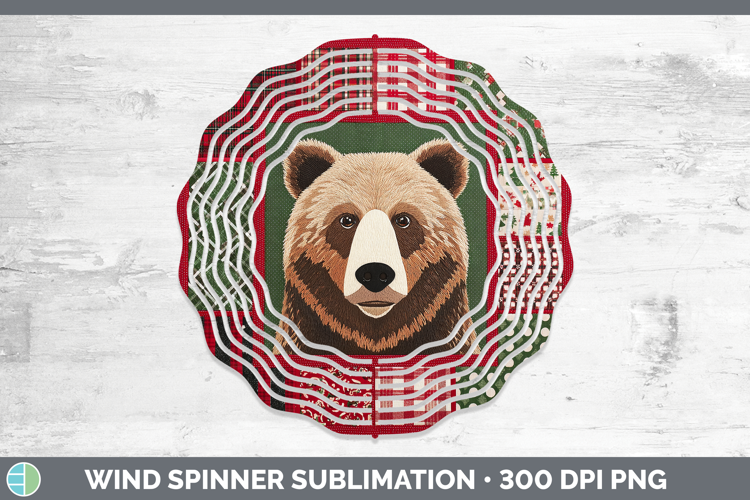 Grizzly Bear Woodland Christmas Quilt Wind Spinner Sublimati