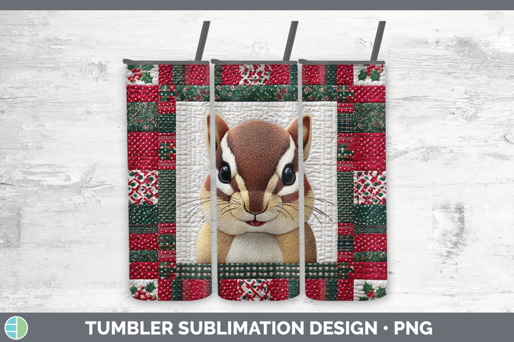 Chipmunk Woodland Christmas Quilt Tumbler Sublimation Design