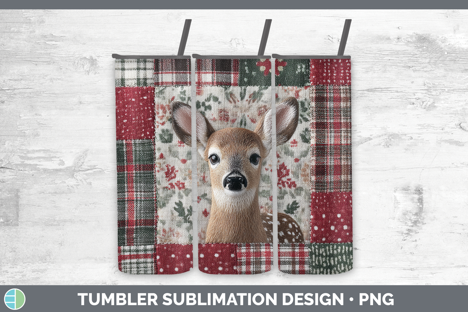 Deer Woodland Christmas Quilt Tumbler Sublimation Design