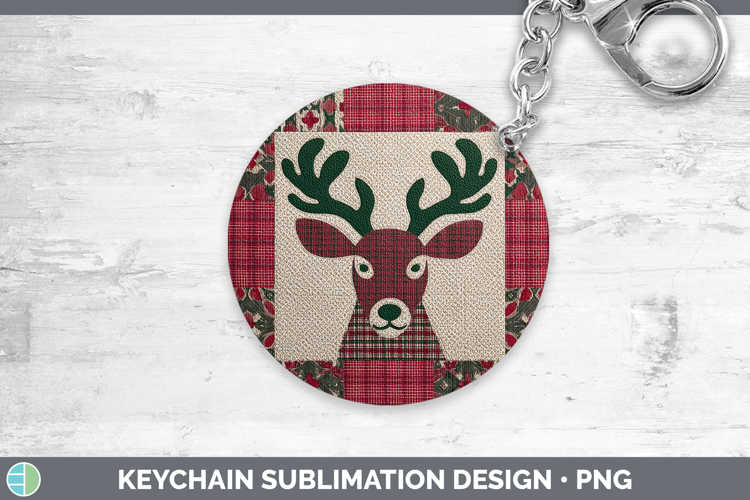 Elk Woodland Christmas Quilt Keychain Sublimation Design