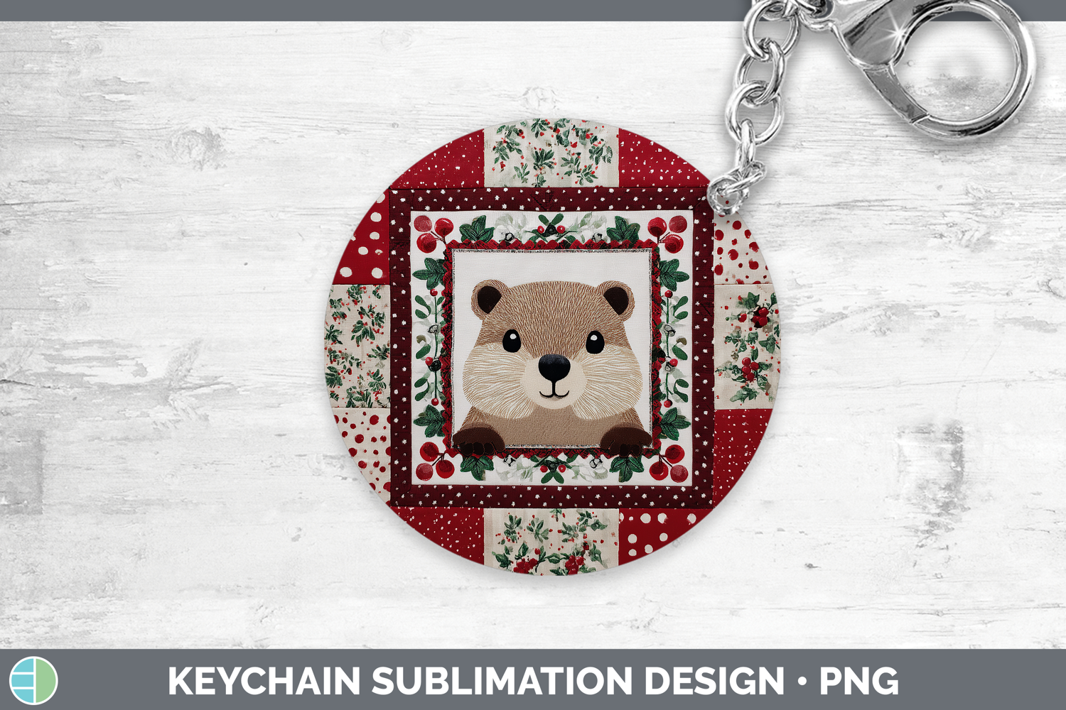 Groundhog Woodland Christmas Quilt Keychain Sublimation Desi