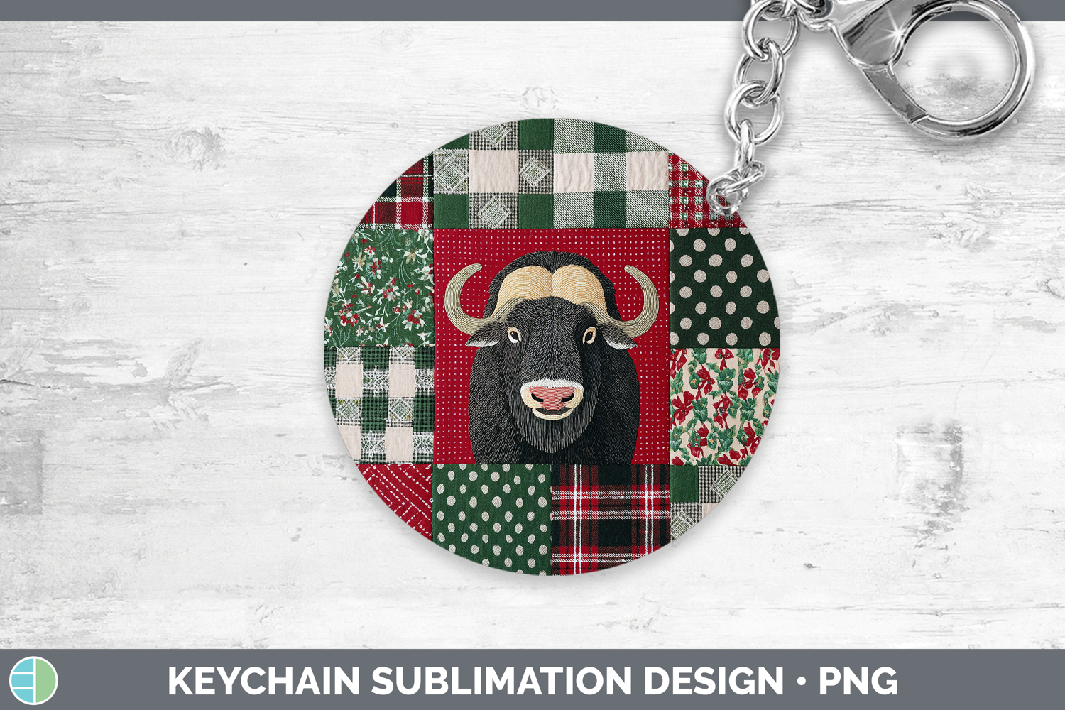 Musk Ox Woodland Christmas Quilt Keychain Sublimation Design