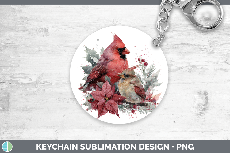 Cardinal Animals Christmas Poinsettia Keychain Sublimation D