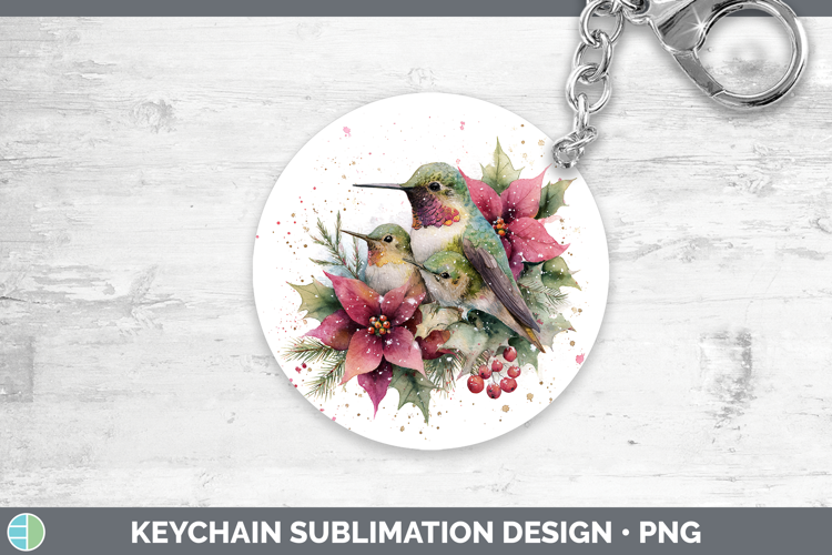 Hummingbird Animals Christmas Poinsettia Keychain Sublimatio