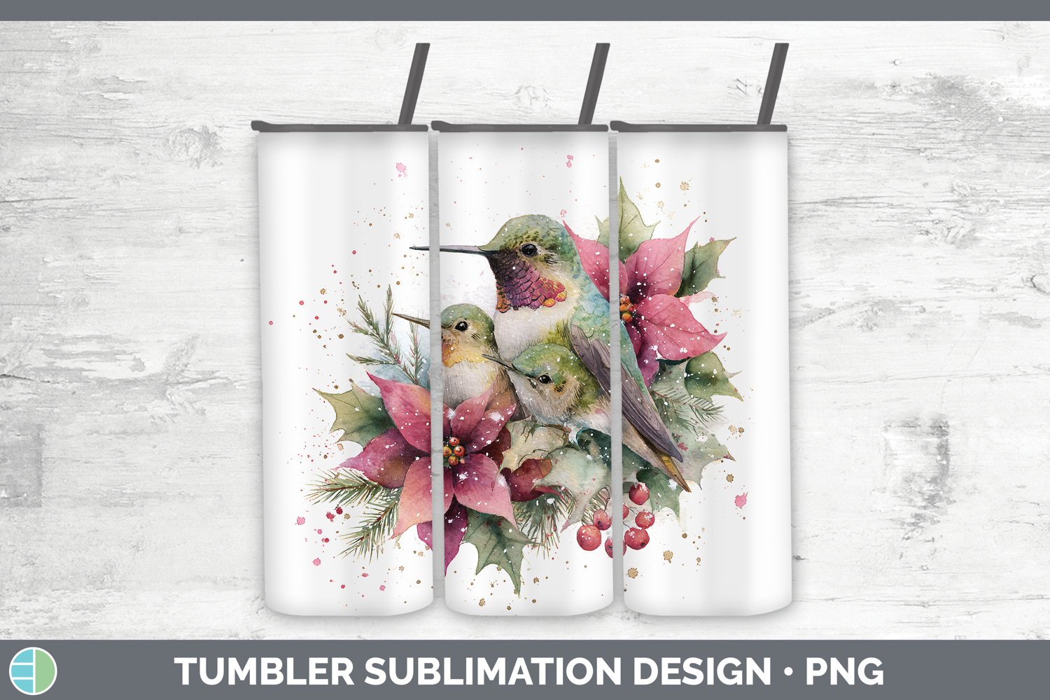 Hummingbird Animals Christmas Poinsettia Tumbler Sublimation