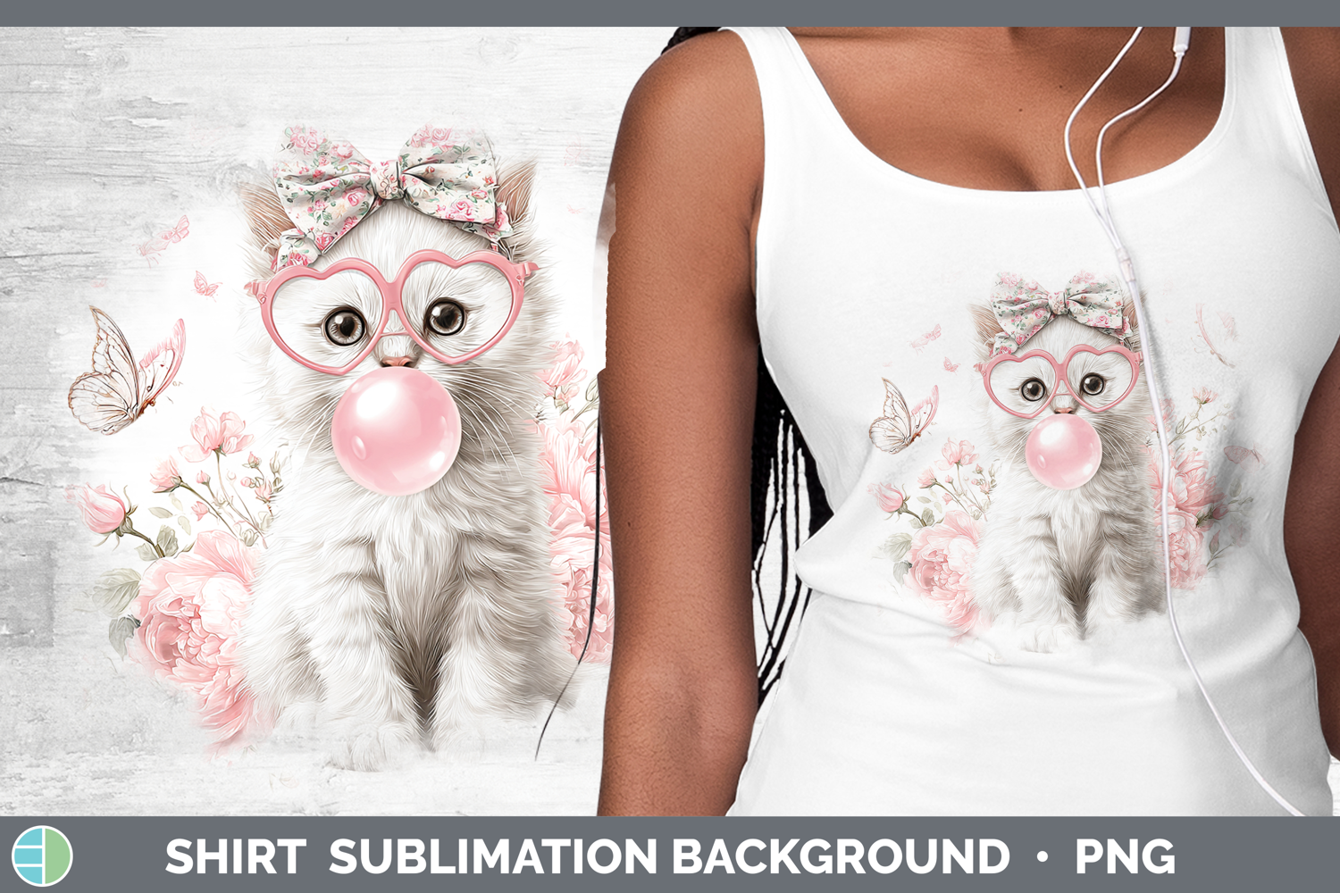 White Cats Pink Bubble Gum Shirt Sublimation Design