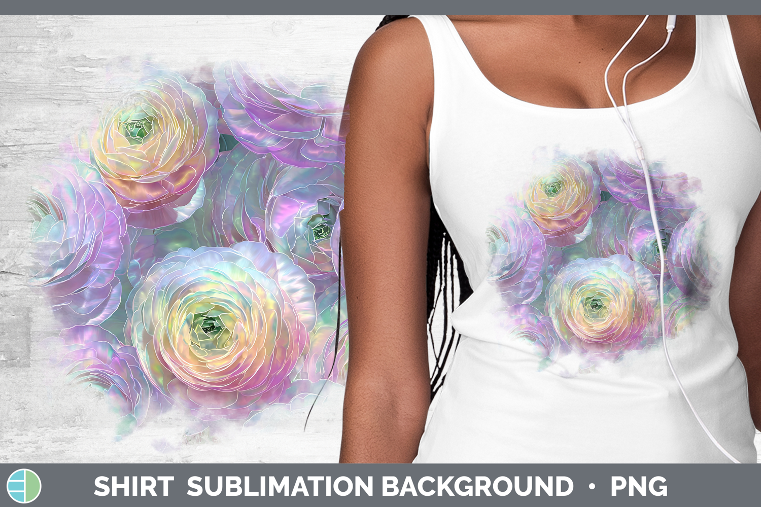 Ranunculus Flowers 01 Holographic Shirt Sublimation Design
