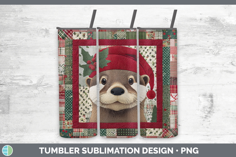 Otter Woodland Christmas Quilt Tumbler Sublimation Design