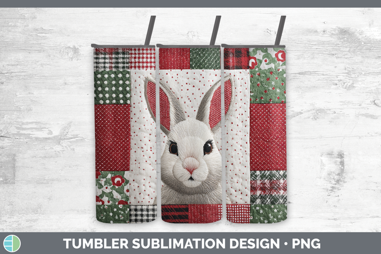 Snowshoe Hare Woodland Christmas Quilt Tumbler Sublimation D