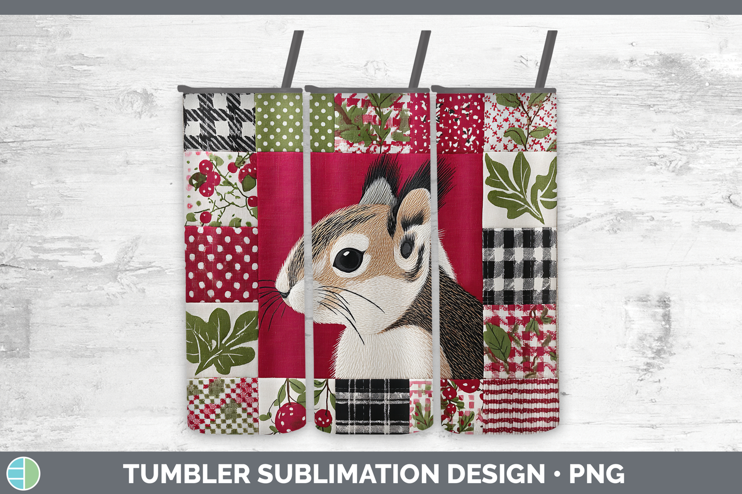 Squirrel Woodland Christmas Quilt Tumbler Sublimation Design